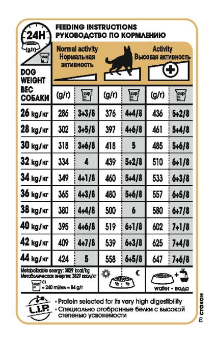 Royal Canin German Shepherd Puppy Dry Dog Food is designed to meet the nutritional needs of purebred German. This table shows the Royal Canin feeding chart for your Puppy according to age. Royal Canin German Shepherd Puppy Food Editors Choice 2.
